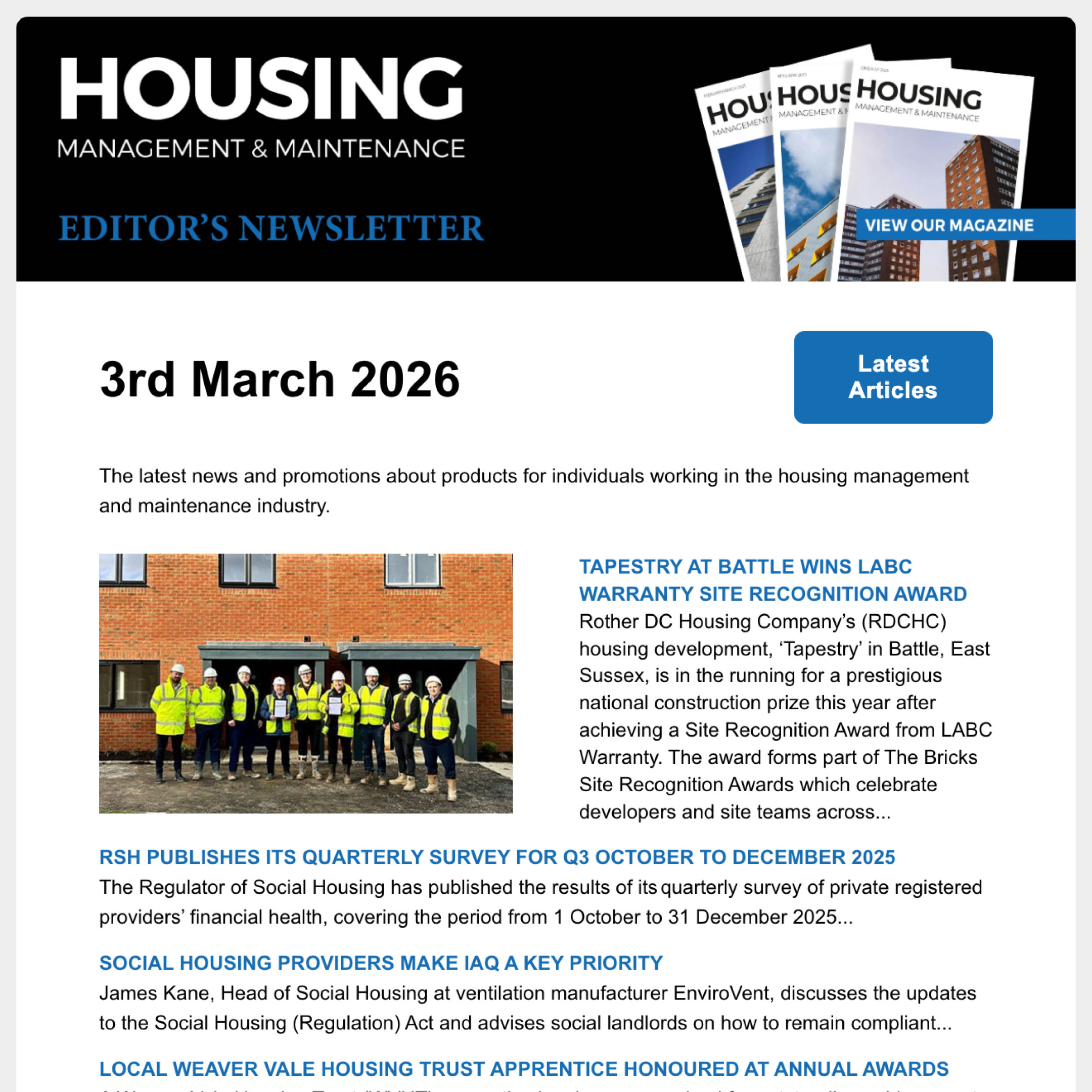 Offering a different angle, the Safer Futures stage will focus on building quality and safety, fire safety, tenant engagement, asset management, repairs and maintenance, and the Fitness for Human Habitation Act.